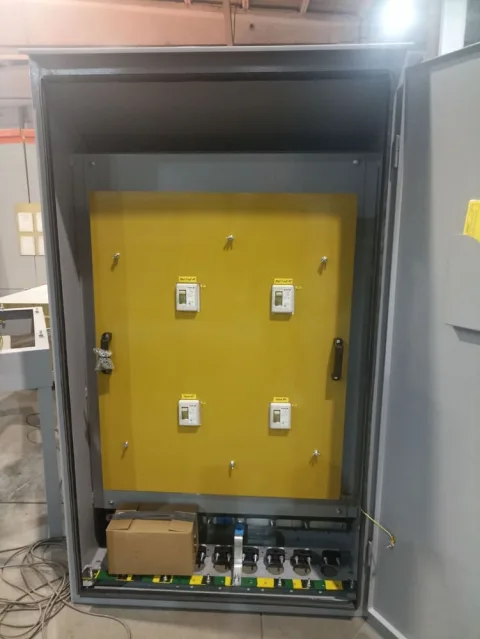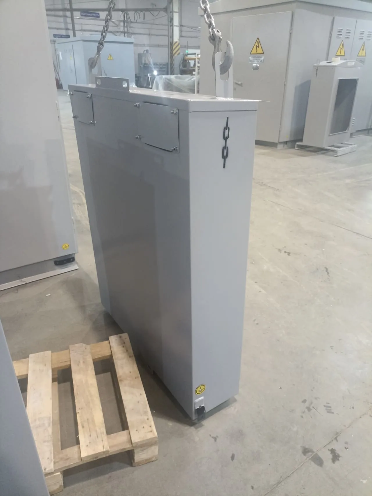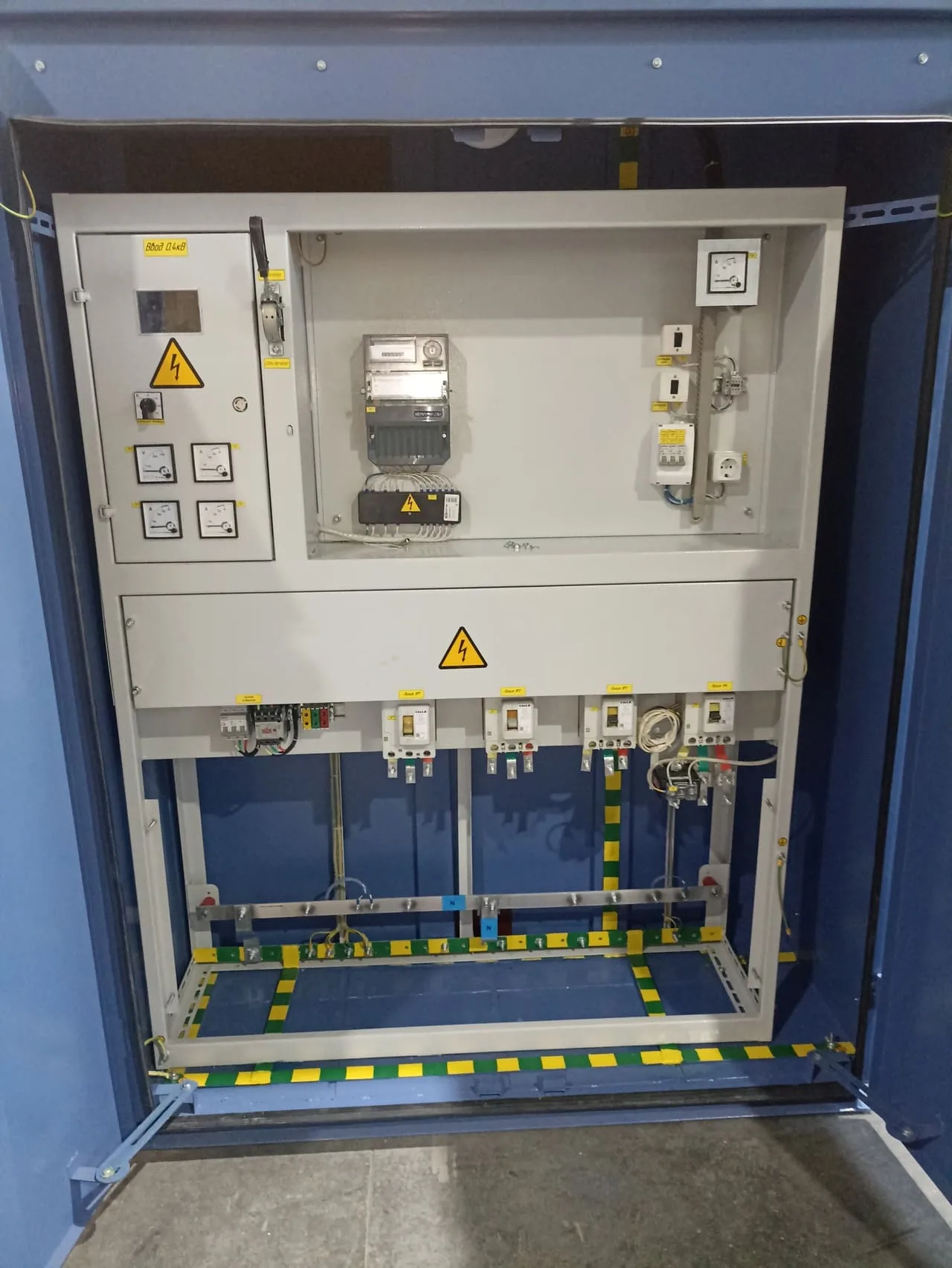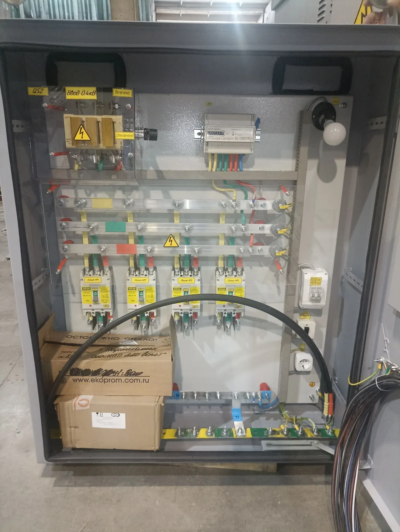 Изготовили и поставили заказчику шкаф силовой для приема и распределения электроэнергии на подставке с ножками.