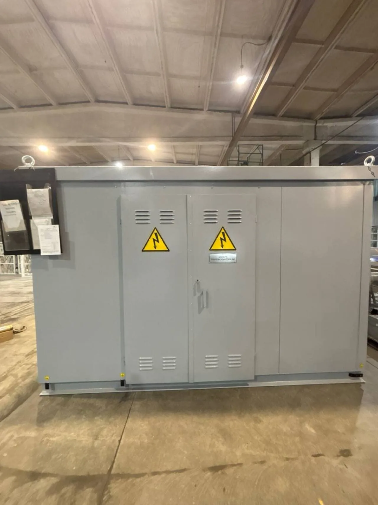 Для электроснабжения зерноочистительного комплекса в селе Зирган изготовлена и поставлена трансформаторная подстанция в металлическом корпусе с порошковым покрытием.